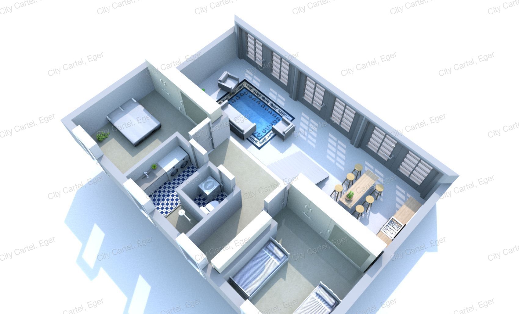 - a padlózat wc-ben fürődben hidegburkolat a többi helyiségben pedig csiszoslt beton